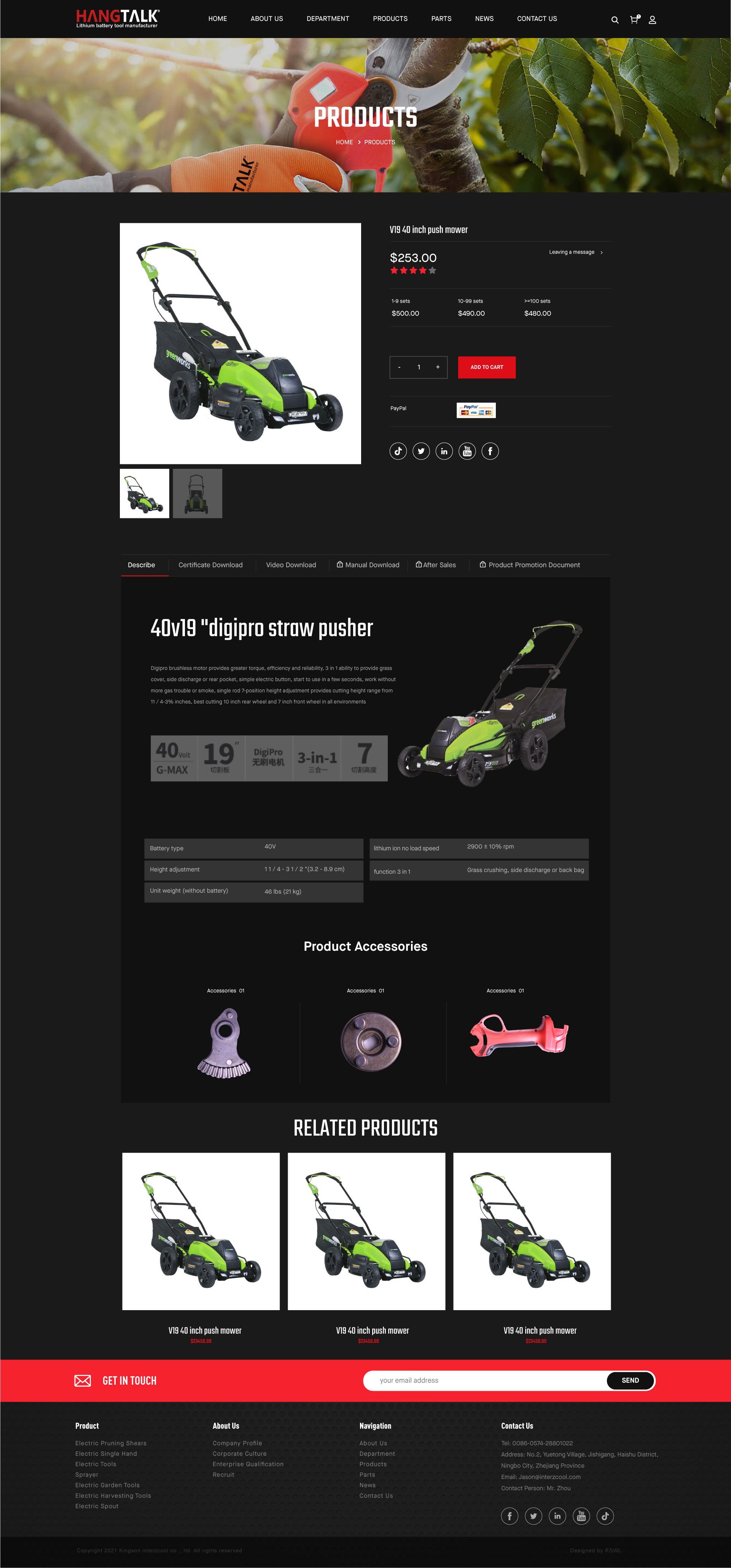 Kingson interzcool co ., ltd is professional manufacture and supplier of electric pruner and electric tying machine and li-battery garden tools company . The company headquartered group in NingBo and recognized as the world's in consumer goods design, development, sourcing and distribution. Best technical and quality let we can cooperation with most of worlds famous brand . Now Kingson company have 2 product line one is professional and the other is DIY to fitting all of our customer requirement .The Company specializes in supply chain management of high-volume, time-sensitive goods of all of our customer . Kingson interzcool co ., ltd provides sophisticated, one-stop-shop supply chain solutions to meet customers' specific needs. From product design, raw material sourcing and production management to quality control, logistics, shipping and other important functions, its spectrum of services covers the entire supply chain end-to-end. Over the years, Kingson has won numerous industry accolades for its performance, governance and sustainability. The Company is committed to the highest operational standards, conducting its business with integrity and good corporate governance practices with control best quality We believe that make best quality is based on the words "it's just the right thing to do".
