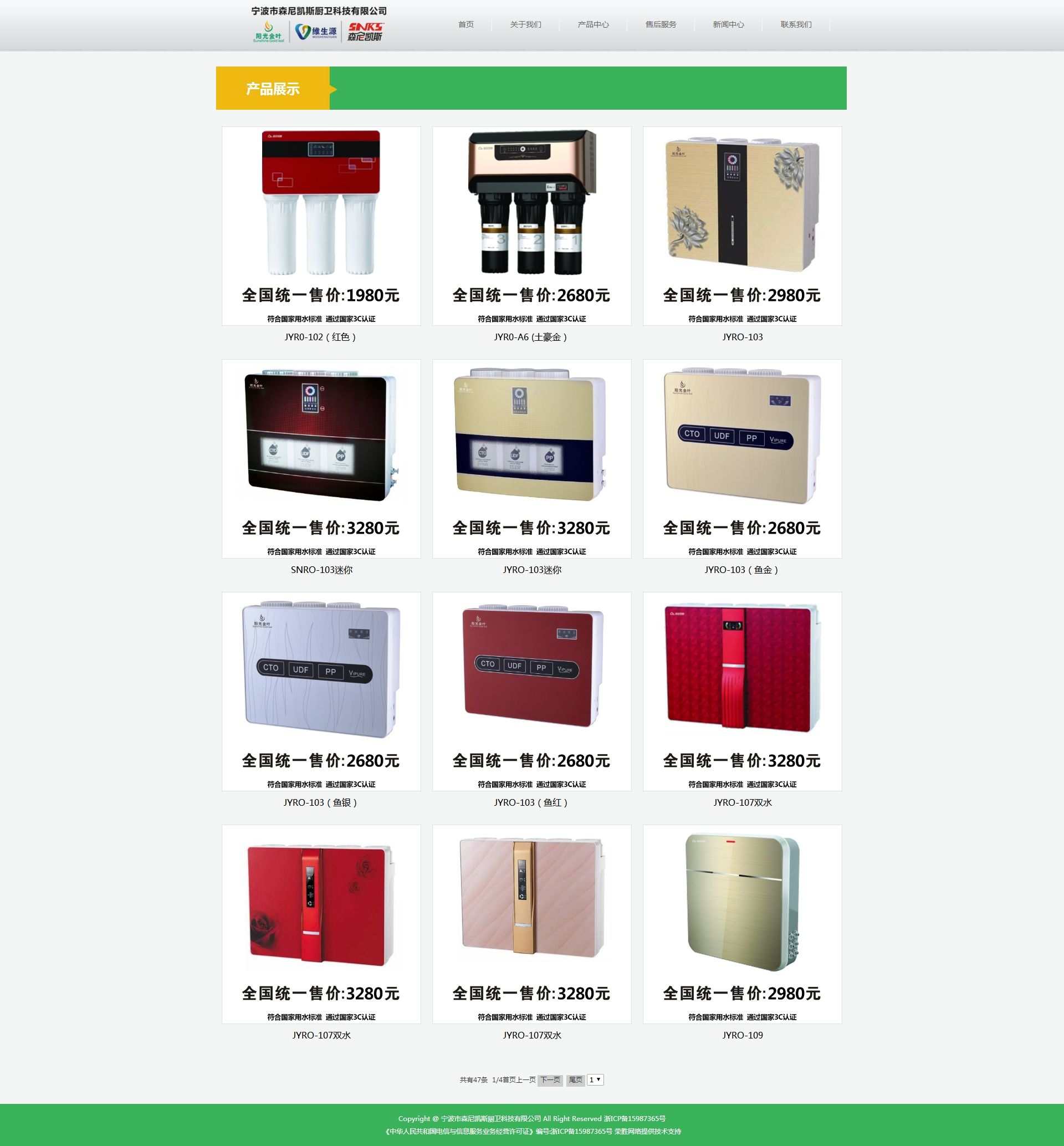 質(zhì)量領(lǐng)先的同時(shí),優(yōu)良的服務(wù)是我們的另一大優(yōu)勢(shì)。近年來(lái),森尼凱斯將銷售網(wǎng)點(diǎn)迅速擴(kuò)張,產(chǎn)品遍布全國(guó)各地的大型建材、家電、百貨連鎖賣場(chǎng),消費(fèi)者隨時(shí)都可以方便的買到森尼凱斯的凈水產(chǎn)品。為更好地服務(wù)全國(guó)消費(fèi)者,建立了完善的用戶檔案,主動(dòng)的定期跟蹤檢測(cè)、終身保養(yǎng),完全做到電子信息化系統(tǒng)管理。并培養(yǎng)了一支高素質(zhì)的專業(yè)服務(wù)隊(duì)伍,為用戶提供咨詢、上門安裝、維修、信訪及免費(fèi)保養(yǎng)等全方位服務(wù),開通了全國(guó)統(tǒng)一客服熱線:400-873-6228