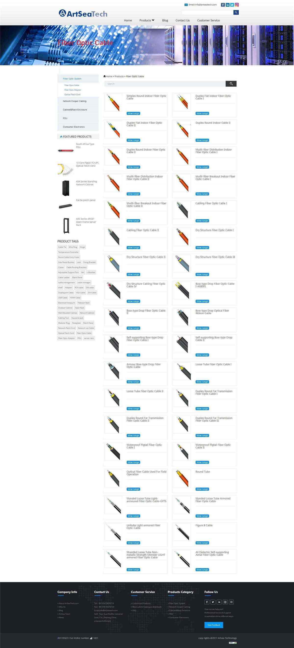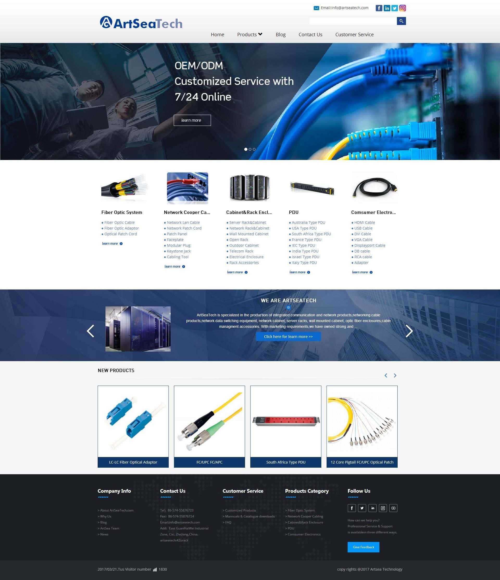 ArtSeaTech is specialized in the production of integrated communication and network products,networking cable products,network data switching equipment, network cabinet, server racks, wall mounted cabinet, optic fiber enclosures,cable management accessories. With marketing requirements,we have owned strong and professional teams covering rack&cabinet,networking and optical fiber enclosure product R&D, systematic solution and supply chain management. with a few years of development and accumulation, ArtSeaTech product range expand to structured cabling solutions,copper CAT5E,CAT6,CAT6E,CAT7,such as keystone jack,face plate,patch panel, optical fiber products, patch cords,PDU, as well as outdoor enclosures,data center infrastructure accessories. ArtSeaTech has a stable developing plan and will expand the product range with the market.