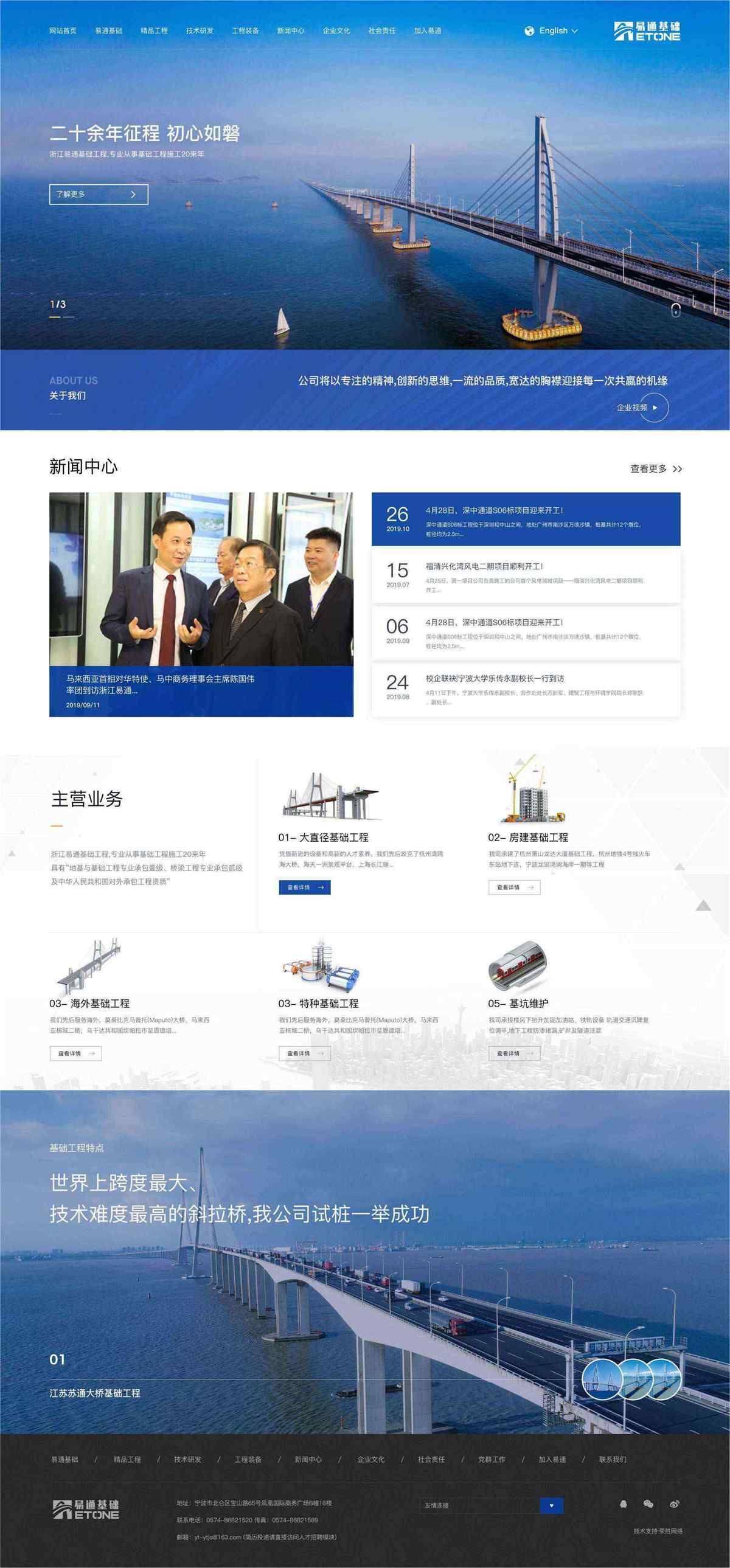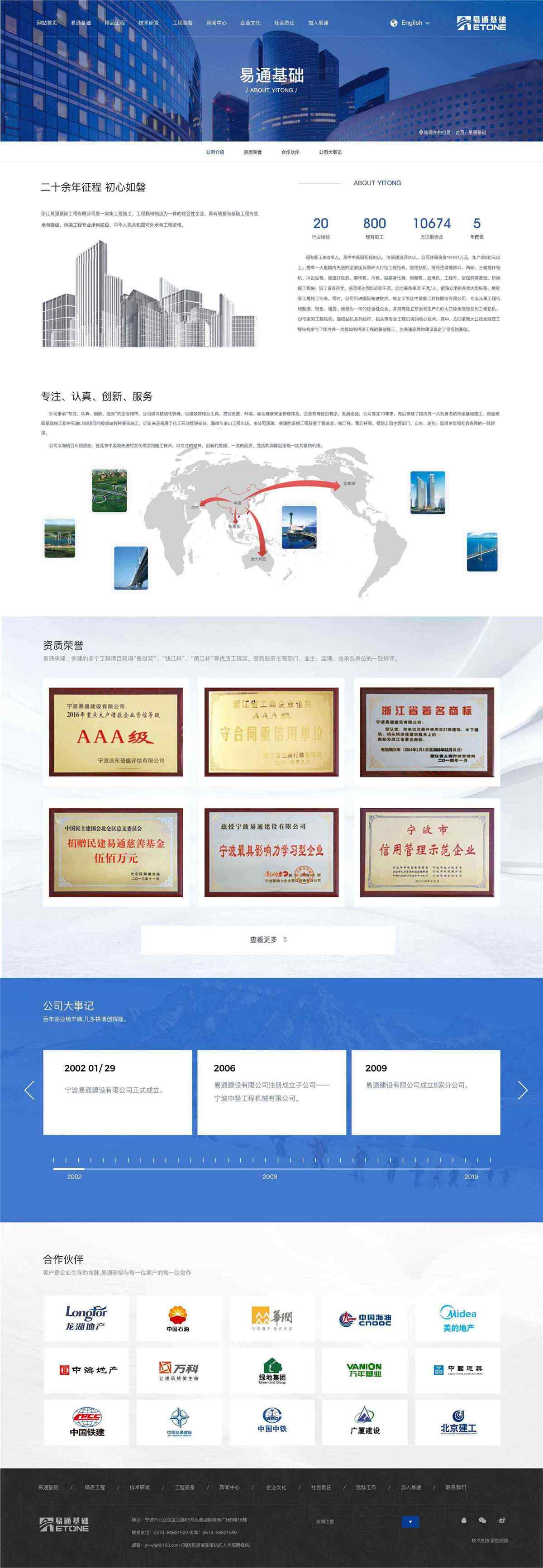 浙江易通基礎(chǔ)工程有限公司是易通控股旗下全資子公司,專業(yè)從事基礎(chǔ)工程施工20多年,具有“地基與基礎(chǔ)工程專業(yè)承包壹級、橋梁工程專業(yè)承包貳級及中華人民共和國對外承包工程資質(zhì)”。公司注冊資金10167萬人民幣,現(xiàn)有員工1000多人,擁有一大批國內(nèi)先進(jìn)的全液壓反循環(huán)大口徑工程鉆機、旋挖鉆機、液壓連續(xù)墻抓斗、多軸鉆機、液壓打樁機等設(shè)備,具備獨立承擔(dān)各類大型樁基、橋梁、地連墻等工程施工能力。